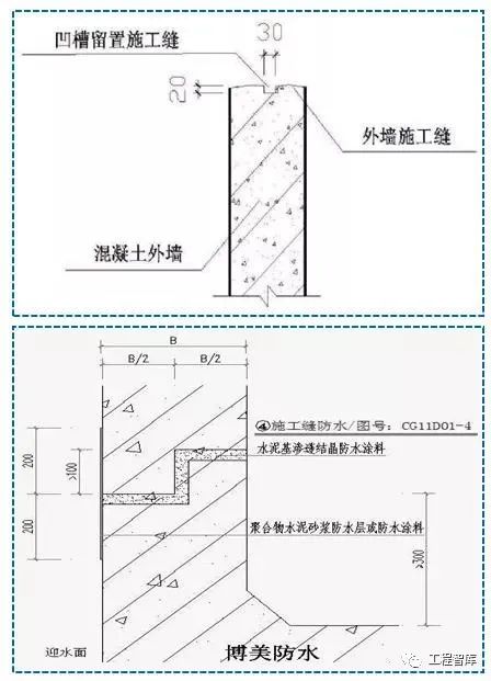 接槎时,往往由于新槎收缩,产生微裂而造成渗漏水。