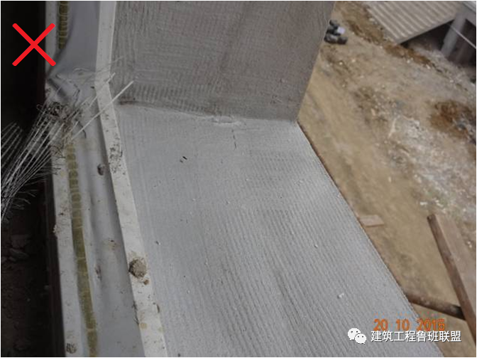2、截水处理:为防止滴水“尿墙”,滴水线(槽)不可通到墙边,可在离墙5cm的地方截断上。