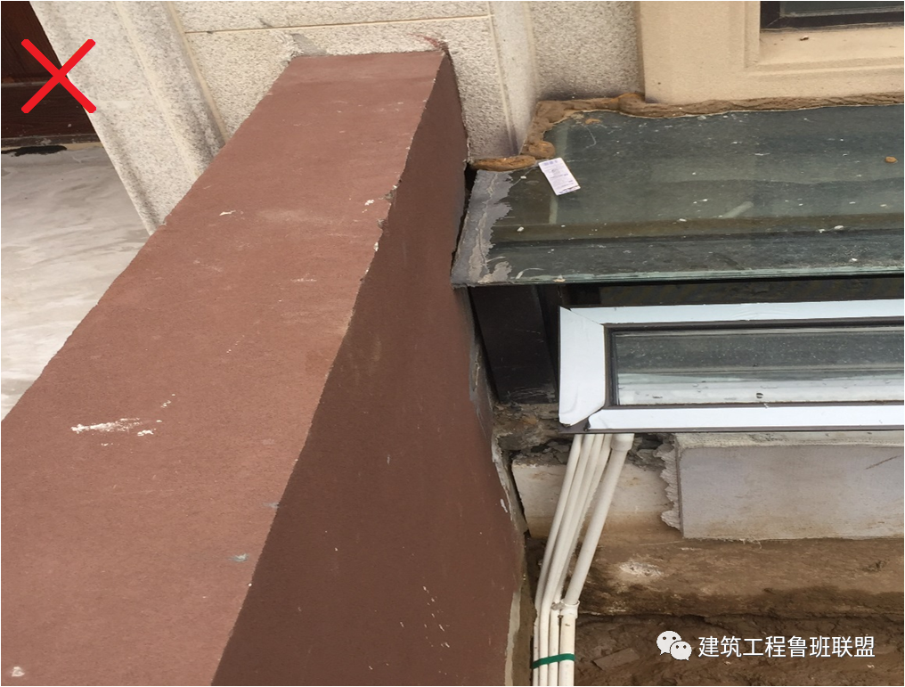 外窗台未考虑装饰线条安装的影响,明显高于内窗台: