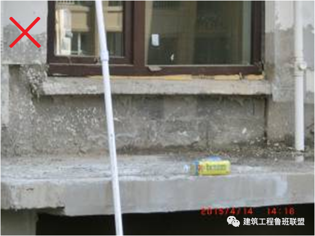 外窗台倒坡或高于内窗台,排水不畅产生渗漏: