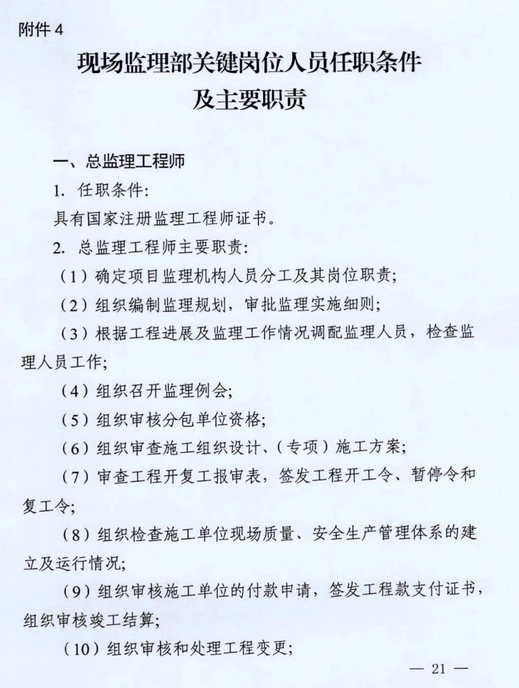 对施工项目部、现场监理部关键岗位人员数量进行优化缩减,仅规定不同规模最低岗位数量。