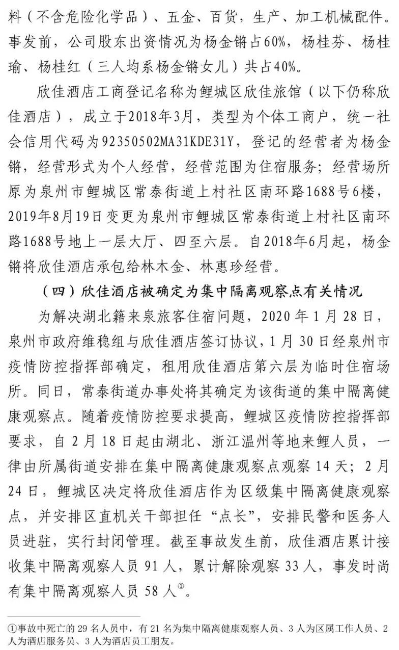 欣佳酒店承包经营人林木金以及其他人员共11人以涉嫌重大责任事故罪被取保候审。