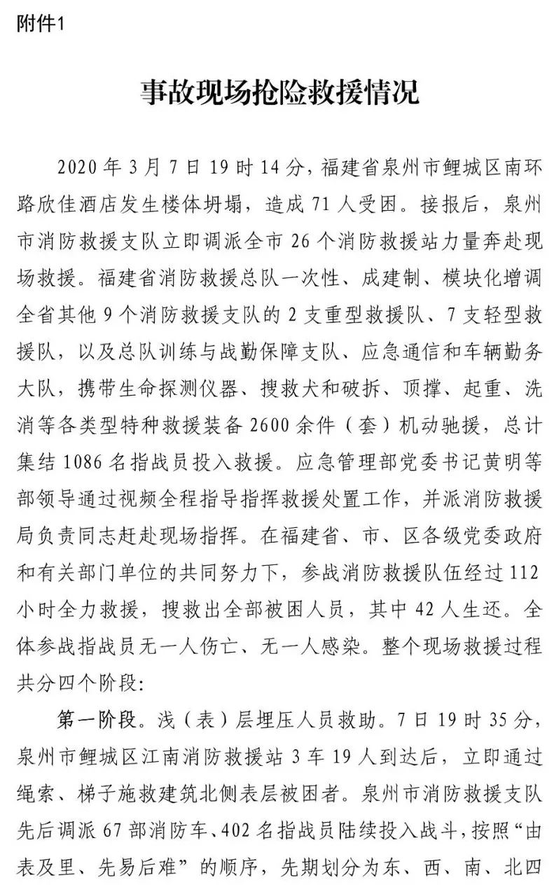 9月3日,福建省应急管理厅官网发布《福建省贯彻落实〈福建省泉州市欣佳酒店“3.07”坍塌事故调查报告〉整改方案》。《整改方案》将追责问责、事故防范和整改、事故警示教育列为整改目标,要求进一步落实追责问责工作。