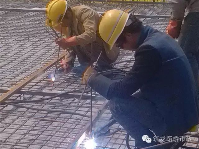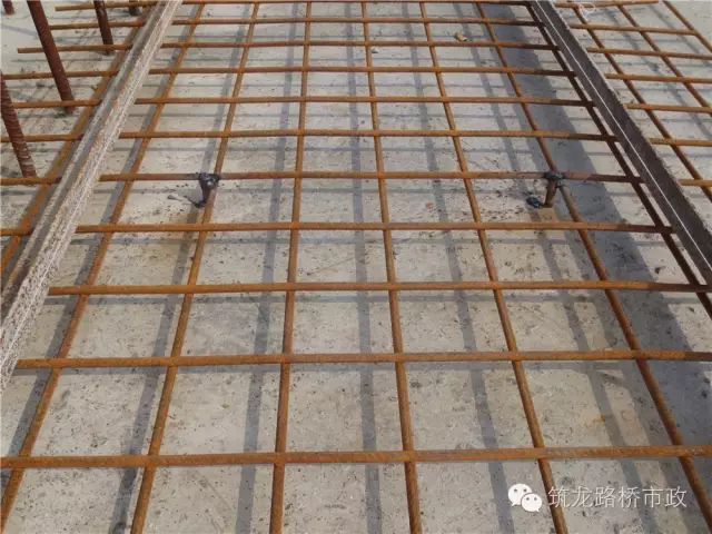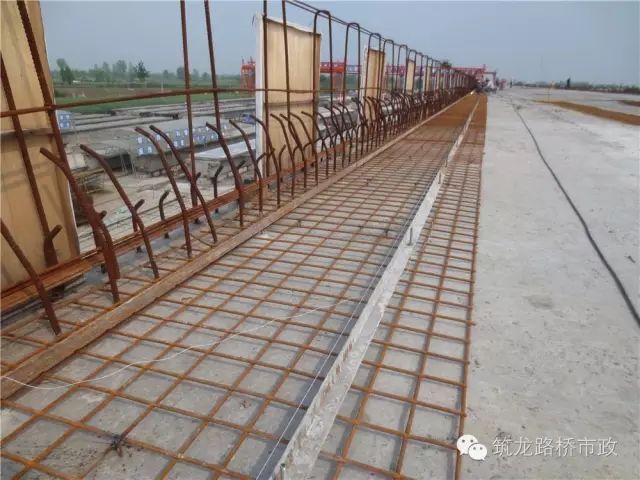 基本同设立同设立振捣梁轨道方式进行。标高带浇筑完毕后,在同一里程桩号标高带顶带线调整钢筋网的平面位置及顶面距拉线垂直距离,将钢筋网与预埋保护层钢筋点焊连接牢固。