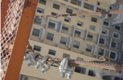 绳卡螺栓松动没有紧固到位,钢丝绳受力后绳卡游动导致两个绳卡紧靠在一起。正确的做法:绳卡的间距是钢丝绳直接的 6 到 8 倍且绳卡和钢丝绳要匹配。