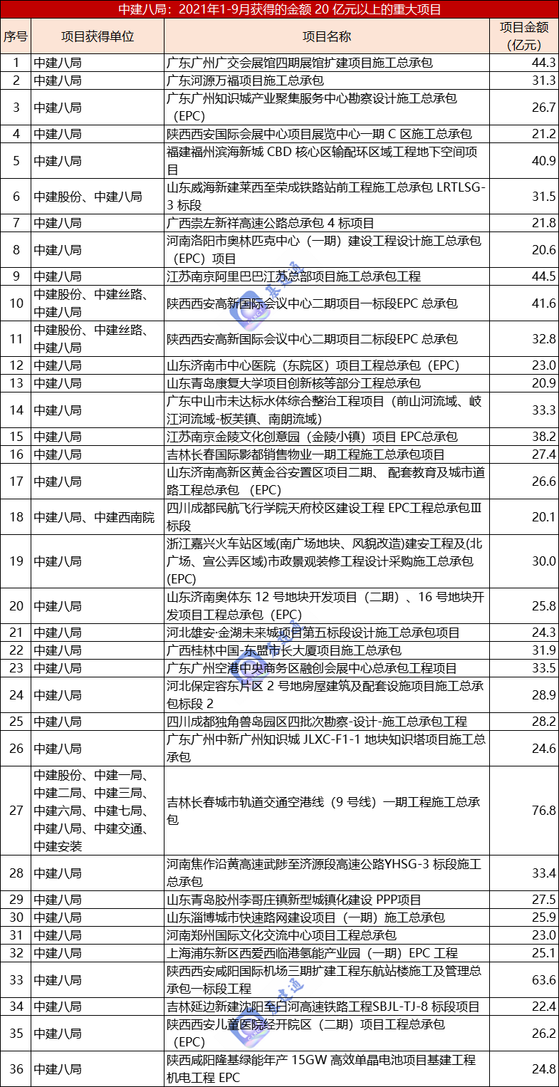 来源:中国建筑公告、基建通大数据等