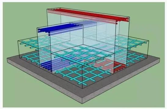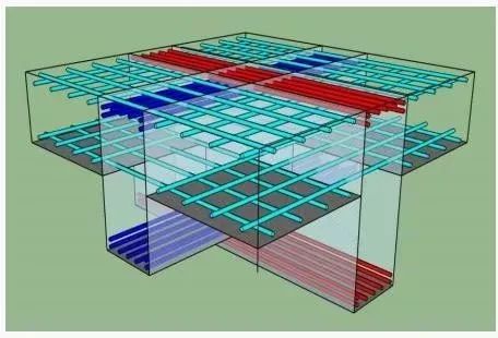4.1.1 平板式筏板(暗梁)基础钢筋模型图,如图 9-1 所示。