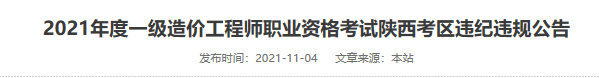 根据人力资源和社会保障部《专业技术人员资格考试违纪违规行为处理规定》(人社部令第31号),陕西省人事考试中心经核实有关应试人员违纪违规行为事实后研究,拟对参加2021年度一级造价工程师职业资格考试陕西考区有违纪违规行为的应试人员作相应处理。