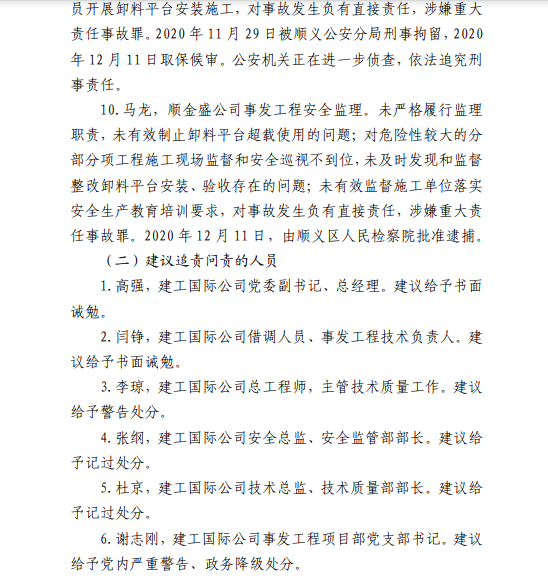 3、顺金盛公司,对事故发生负有重要责任。给予其50万元罚款的行政处罚,纳入联合惩戒对象管理;暂停其在北京建筑市场投标资格60日。
