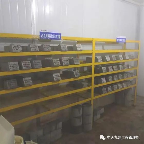 项目部设置专职质检员,按规范要求留置同养试块及标养试块,同养试块拆模后放置于对应楼楼梯口处,并上锁管理,到达期龄后及时送检。