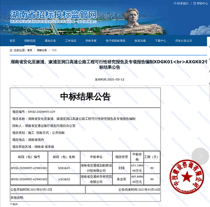 2021年3月12日,项目可行性研究报告及专项报告编制中标公示。