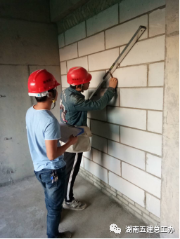 (1)垂直度:用红外线激光仪对砌筑好的墙面进行垂直度检查,要求垂直度误差在5mm内。