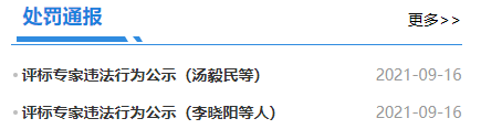 9月16日,浙江省综合性评标专家库网站发布两则处罚通报,而在不久前,已有多名评标专家被通报,其中多人被判刑。