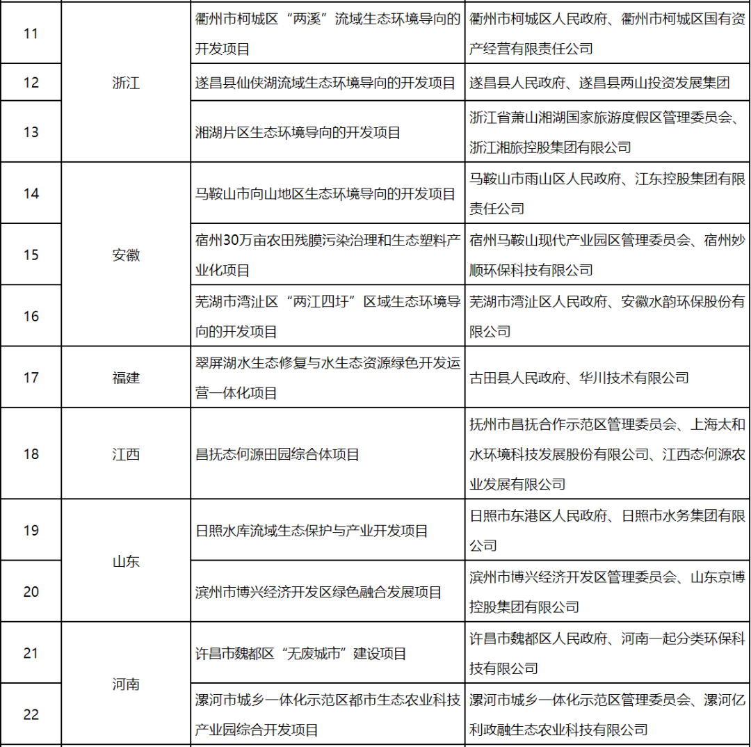 附:2021年生态环境导向的开发(EOD)模式试点项目名单