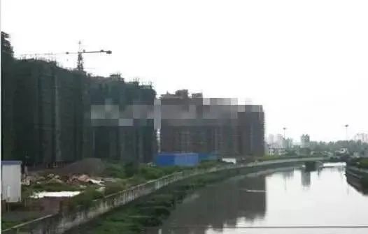 莲花河畔景苑商品房小区工地共有11幢在建13层楼房,在淀浦河(宽约40m)的南面,11幢在建楼房长度方向与淀浦河河岸基本平行,这些楼房北面边界距淀浦河河岸距离在20~50m之间,其中倒塌楼房距防汛墙最近,据人目测仅有二三十米。