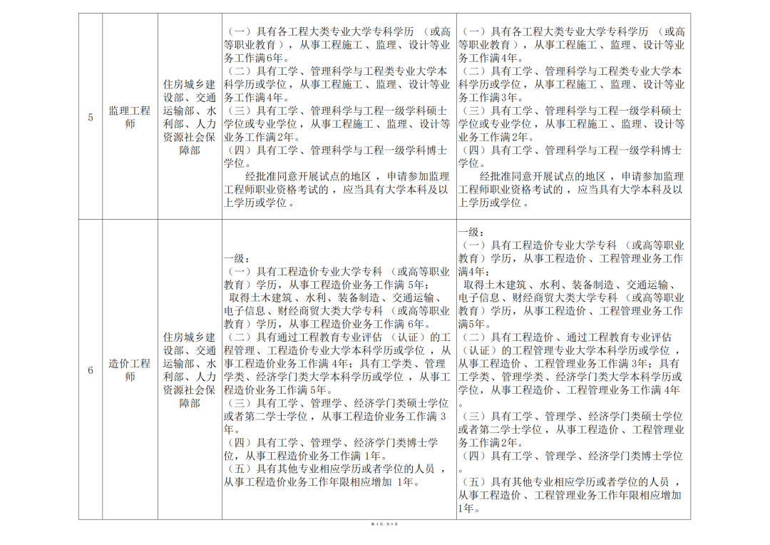 (二)具有通过工程教育专业评估(认证)的工程管理、工程造价专业大学本科学历或学位,从事工程造价业务工作满4年;具有工学类、管理学类、经济学门类大学本科学历或学位,从事工程造价业务工作满5年。