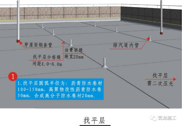 2、基层与突出屋面结构的交接处和基层的转角处,找平层均应做成圆弧形。