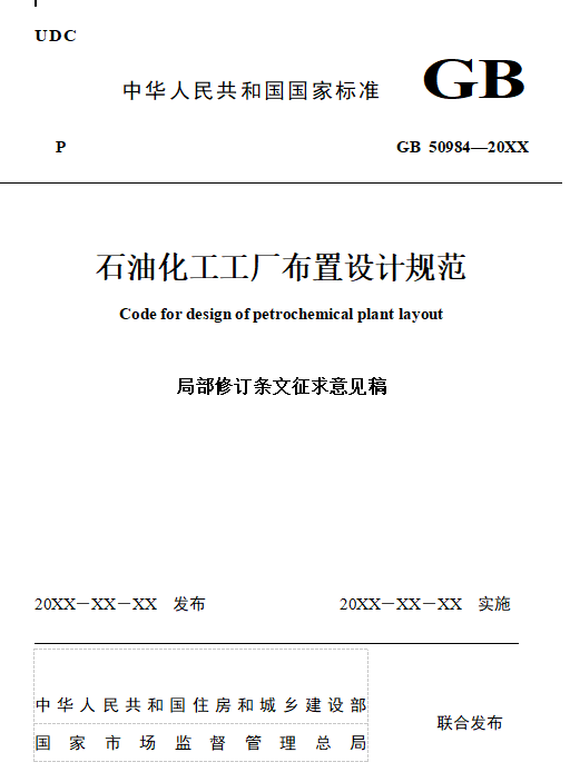 《石油化工工厂布置设计规范(局部修订条文征求意见稿)》