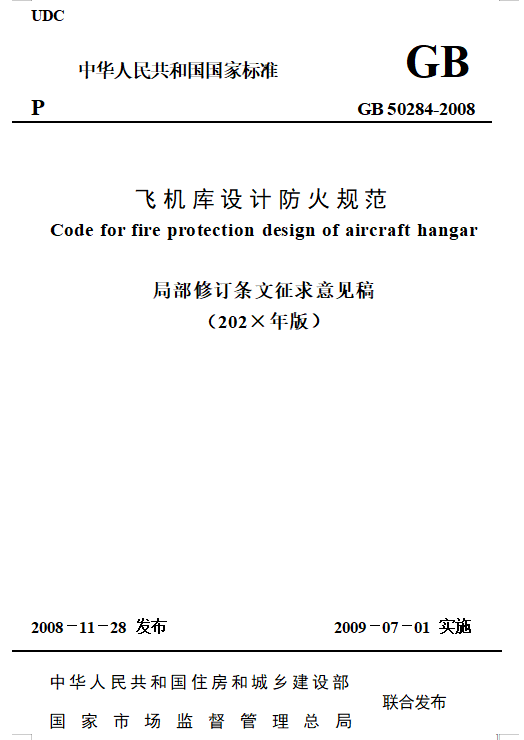 《飞机库设计防火规范(局部修订条文征求意见稿)》