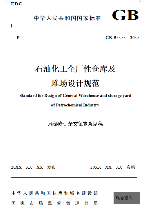 《石油化工全厂性仓库及堆场设计规范(局部修订条文征求意见稿)》