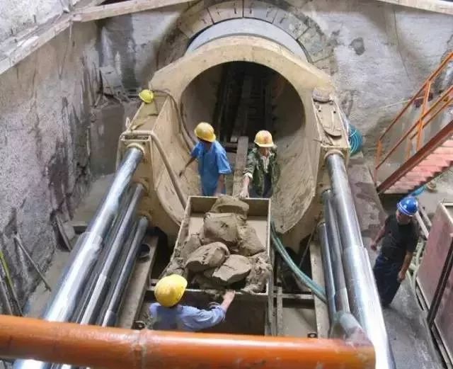 使用盾构在地中推进,通过盾构外壳和管片支撑四周围岩,防止发生隧道内的坍塌,同时在开挖面前方用刀盘进行土体开挖,通过出土机械运出洞外,靠推进油缸在后部加压顶进,并拼装预制混凝土管片,形成隧道结构的一种机械化施工方法。