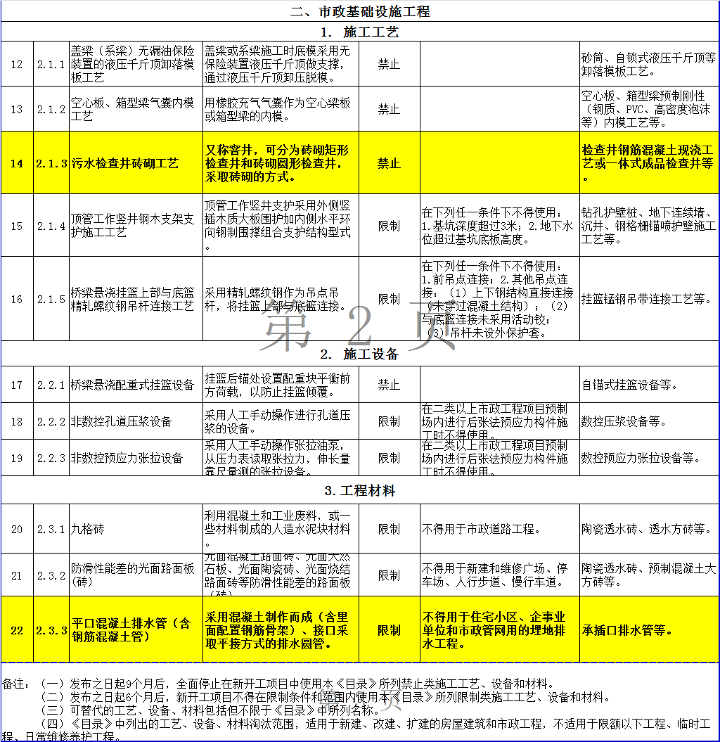 房屋建筑和市政基础设施工程从业单位要在本公告发布之日起9个月后,全面停止在新开工项目中使用本《目录》所列禁止类施工工艺、设备和材料;本公告发布之日起6个月后,新开工项目不得在限制条件和范围内使用本《目录》所列限制类施工工艺、设备和材料。负有安全生产监督管理职责的各级住房和城乡建设主管部门依据《建设工程安全生产管理条例》有关规定,开展对本《目录》执行情况的监督检查工作。