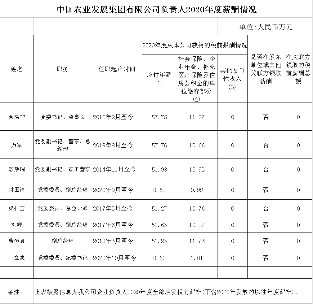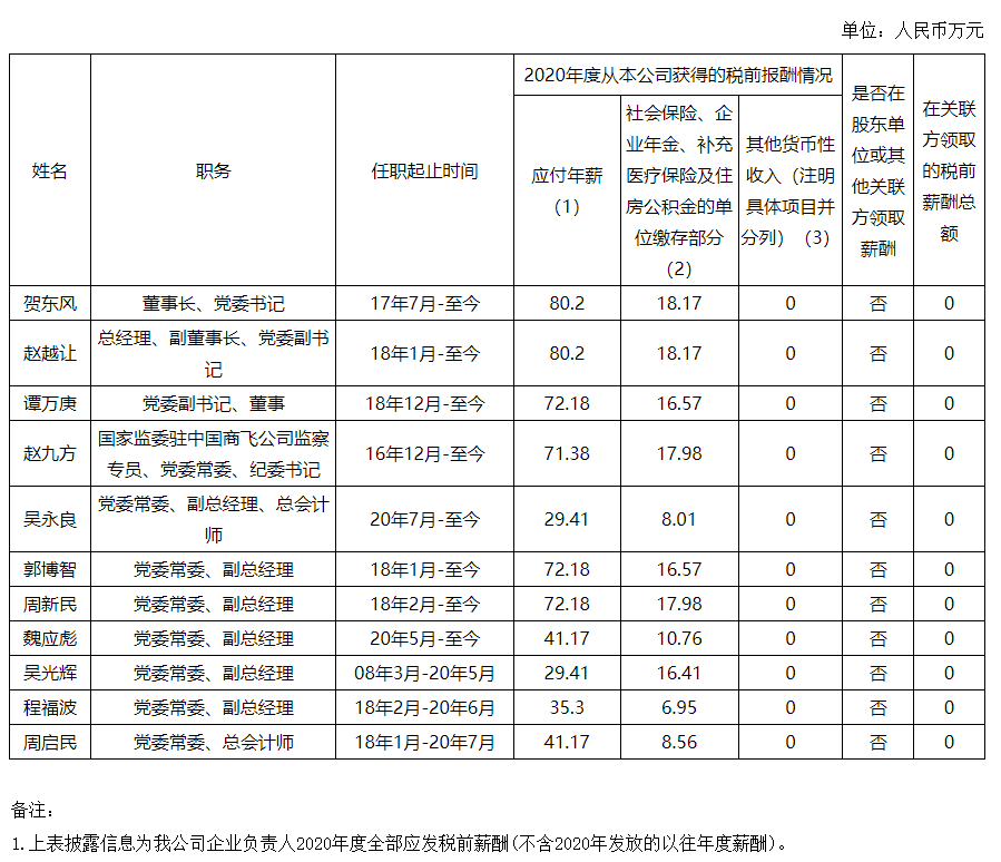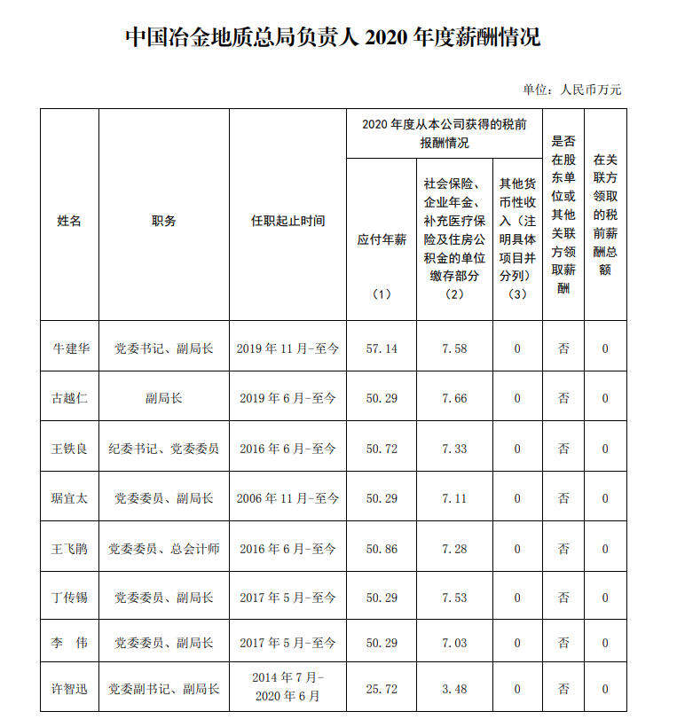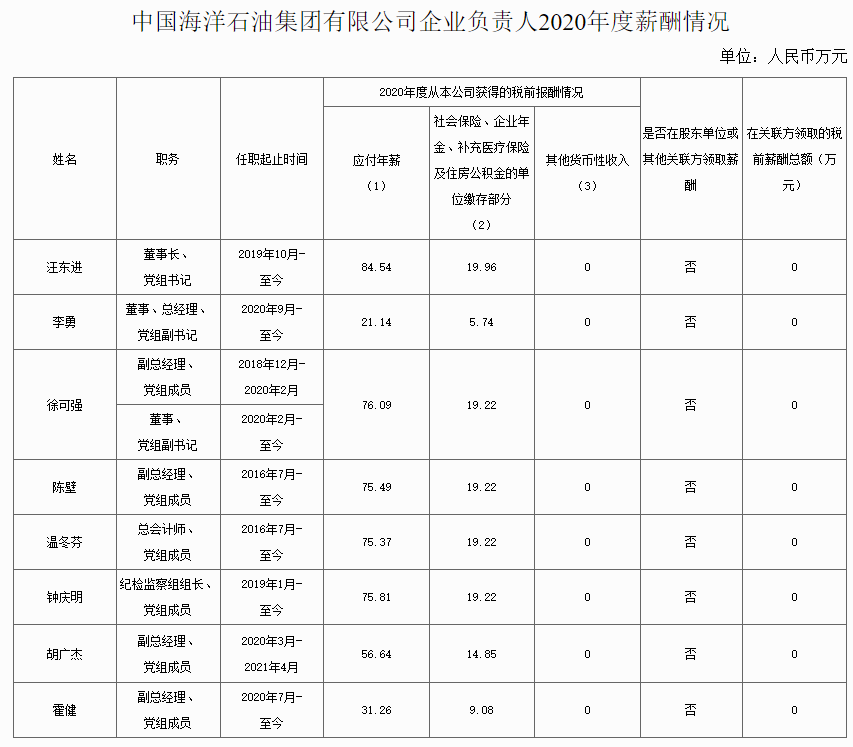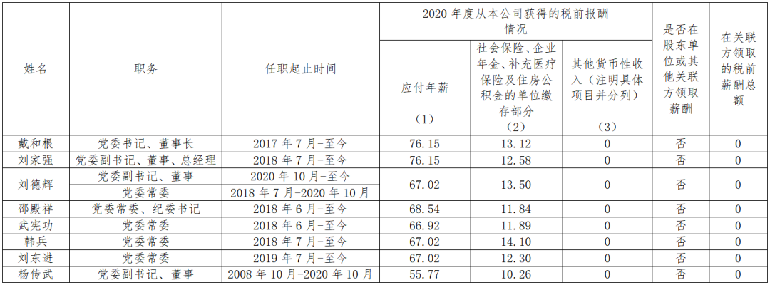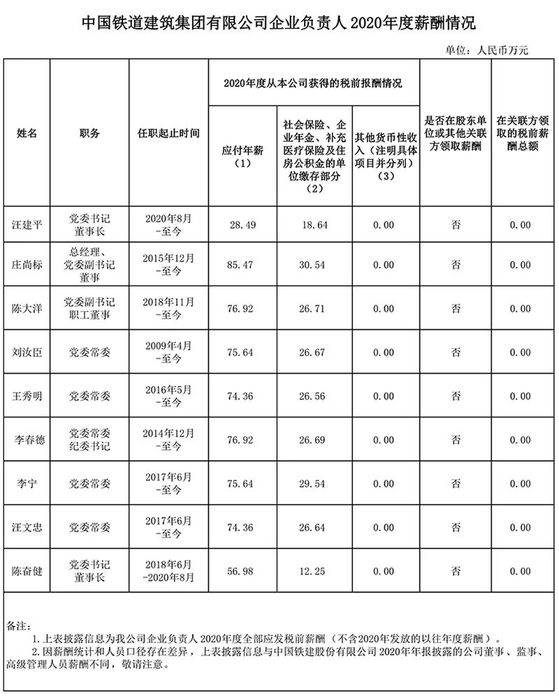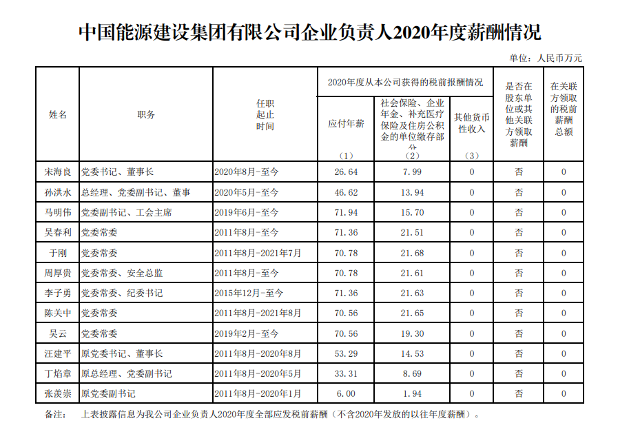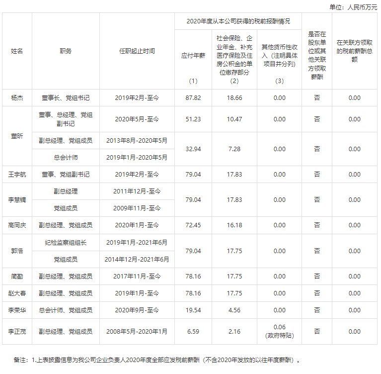 注:如有中央企业一把手在2020年内发生人事变更,该表优先选取2020年内在职时间较长人员。如需了解各中央企业所有负责人2020年度薪酬情况请在下方查看。