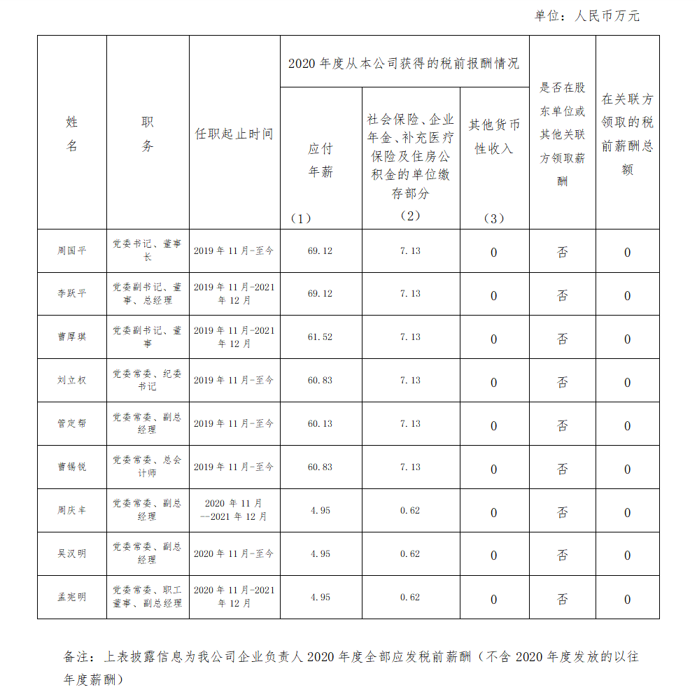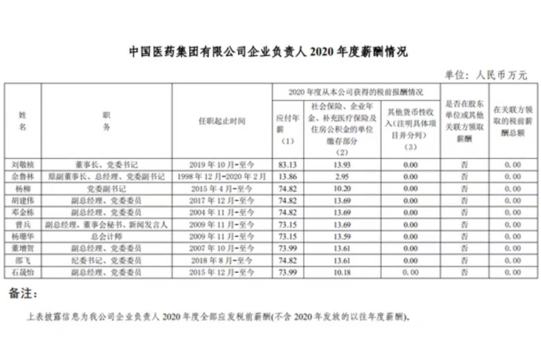 央企一把手的2020年度应付年薪明细,一起来看↓