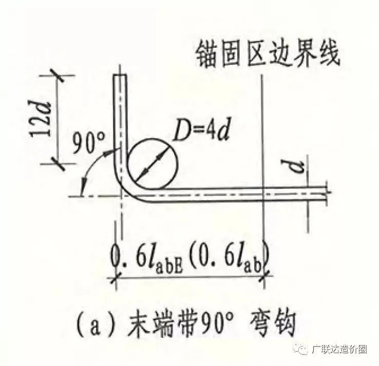 图纸参照的多数都是16G-101系列图集、11G329系列图集等以及相关配套技术支撑,我们从图集中找到弯钩锚固长度就可以看到是按外皮还是中心线计算。外皮尺寸就是钢筋从弯钩外侧量取到钢筋末端的尺寸(图2),我们以90度弯钩为例(图1),按外皮计算钢筋的长度。