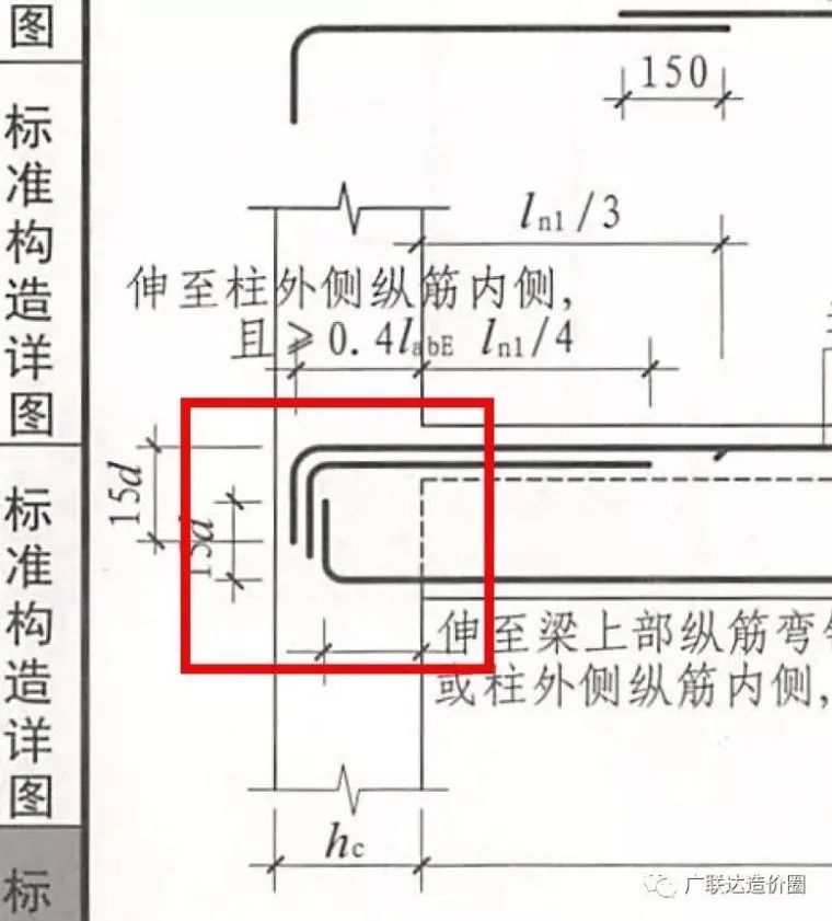 按照外皮尺寸量取就必须有依据,我们要从图纸引用的图集中找到相关依据。以平面表示法-框架剪力墙、梁、板16G101-1 P84页为例,梁的锚固长度是15d,尺寸线对准的是中心线还是外皮,我们可从下图中找到依据。