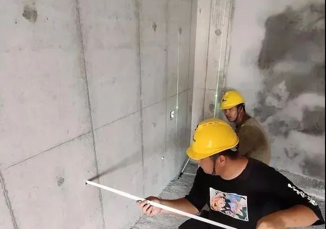 1、基层处理(砼墙面打磨、涂刷界面剂)、四周弹线定位:墙体表面应平整顺直,按照“一户一验”要求对每户进行检查方正性检查,包括铝膜施工免抹灰墙面,整体垂平度偏差不应大于4mm。基层砼墙面需要打磨消除表面浮浆、油脂,完成后涂刷墙体界面剂防止空气水分等渗透,有效保障材料之间粘接度,起到的是保障装饰的作用。
