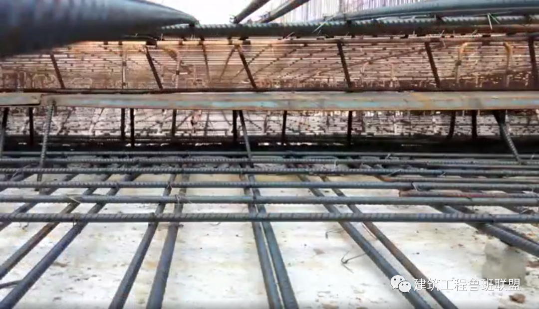 七、上部侧模安装定位后,将钢丝网的上弦钢筋与筏板的上层筋十字节点间隔扎丝扎牢。