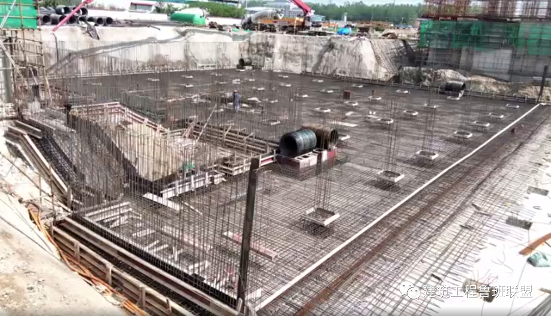 钢丝网的网眼为10×10mm,钢丝网宽度为筏板上下层钢筋净距/2+ 30mm,止水钢板的厚度为3mm、宽度为300mm;