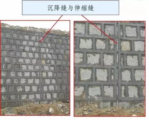 设计时,一般将沉降缝和伸缩缝合并设置,沿路线方向每隔10~15m设置一道,兼起两者的作用,缝宽2~3cm,缝内一般可用胶泥填塞,但在渗水量大、填料容易流失或冻害严重地区,则宜用沥青麻筋或涂以沥青的木板等具有弹性的材料,沿内、外、顶三方填塞,填深不宜小于0.15m,当墙后为岩石路堑或填石路堤时,可设置空缝。