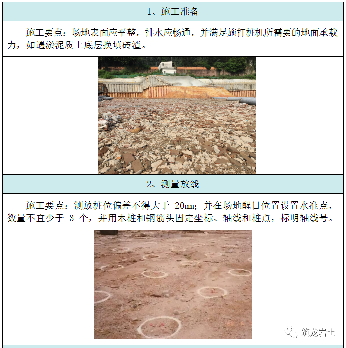 2、场内桩机行走路线地基处理完成,如遇淤泥质土底层采用换填砖渣方式对基底进行处理,工作面要求 11m*4m。