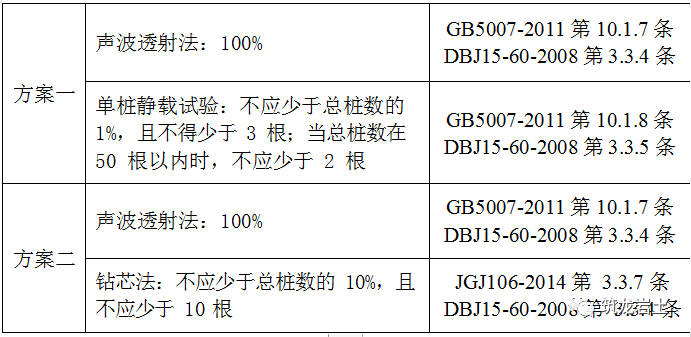 冲(钻)孔灌注桩桩基检测需根据图纸要求及相关规范进行。给出以下几个方案供参考。