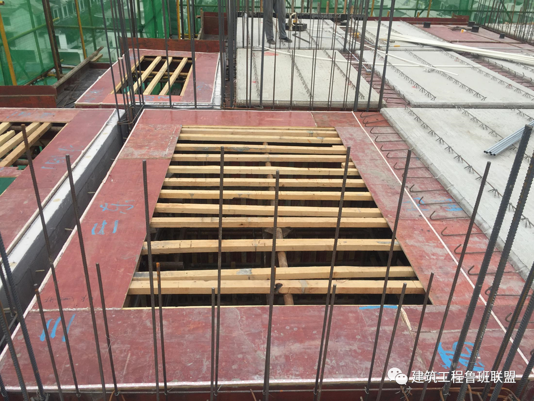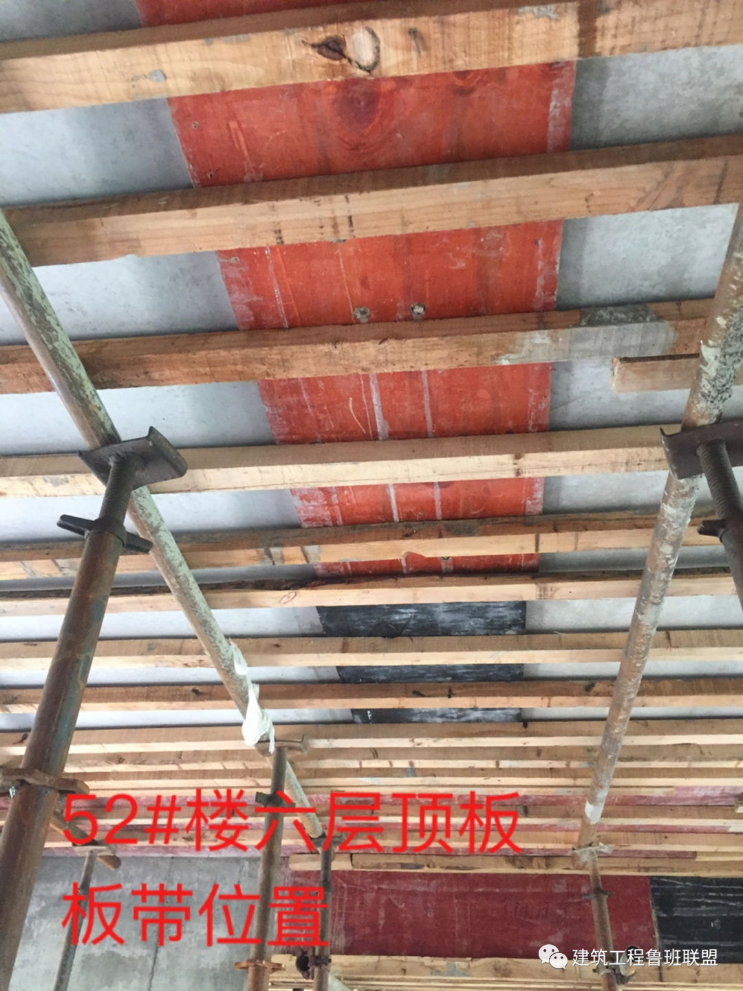 2、板带位置模板支撑加固不到位,浇筑砼后导致模板变形漏浆。