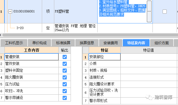 以给水PE 管DN100安装清单为例,工程量清单项目描述: