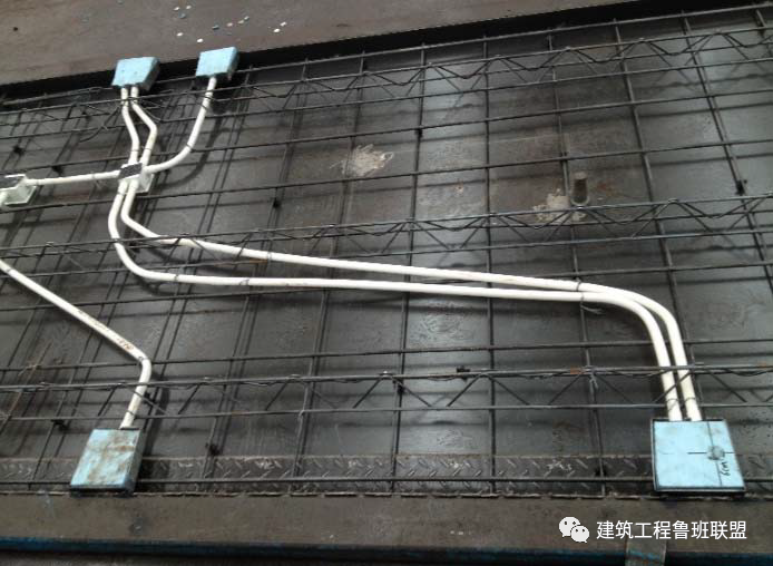 (2)楼台平台底面明配管安装应等穿线同步进行,否则过线盒盖板无法封盖固定;