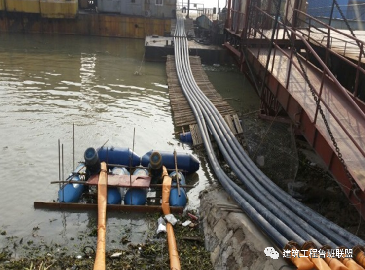 由于项目与长江仅有一路之隔,整个冲挖工艺无论是抽水冲挖,还是排出泥浆均需均需穿越沿江大道,管线布设方案采用埋设地下管线。