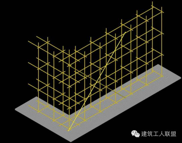 2、外立杆:双排脚手架中离开墙体一侧的立杆,或单排架立杆。