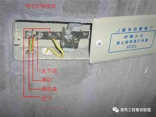 3、浴室内的等电位联结不得与浴室外的PE线相连,以防故障时引入危险电位。如浴室内有PE线,则必须要与该PE线做联结(例如插座线的PE端子或接线盒内的PE线);