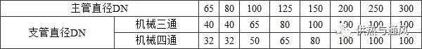 表12.3.12 机械三通、机械四通连接时支管直径