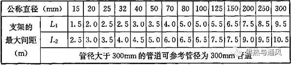 表7.3.4-3 钢管支吊架的最大间距