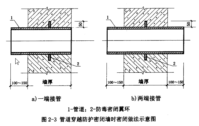 2、管道穿密闭隔墙处理