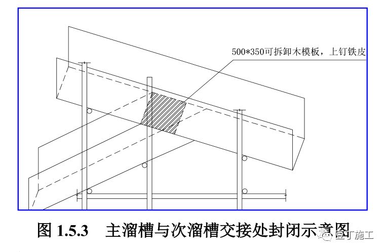 将主溜槽与次溜槽交接处的活动封板封闭,防止混凝土流入次溜槽,具体见下图。