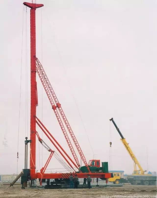 柴油打桩机由柴油桩锤和桩架两部分组成。桩架有专用的,也有利用挖掘机或起重机上的长臂吊杆加装龙门架改装而成。柴油桩锤按其动作特点分导杆式和筒式两种。导杆桩锤冲击体为气缸,它构造简单,但打桩能量小;筒式桩锤冲击为活塞,打击能量大,施工效率高,是目前使用较广泛的一种打桩设备。