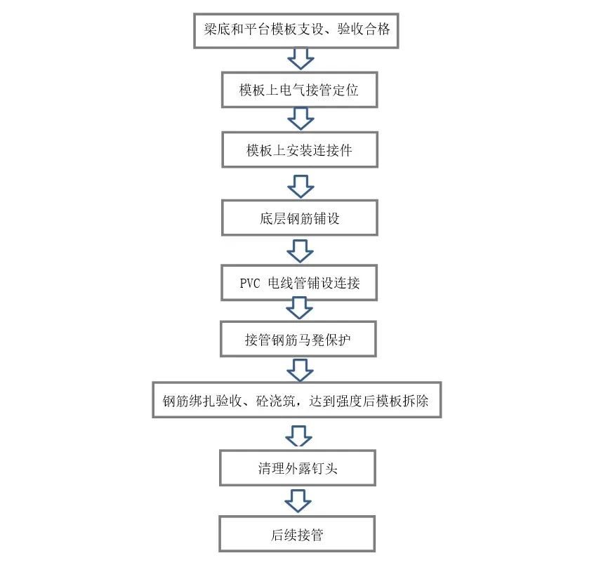 针对传统工艺下PVC电线管预埋敷设需要在模板上开洞易造成质量缺陷的问题,南通二建集团某公寓项目采用模板免开洞预埋工艺,杜绝了上述质量缺陷。