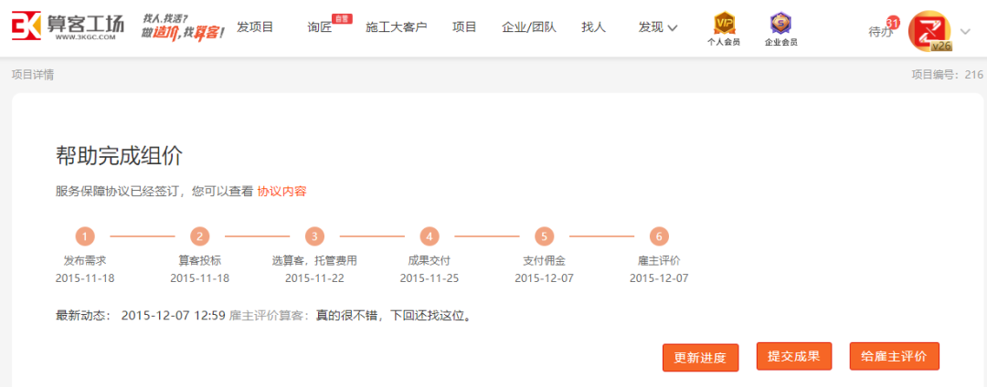 最初知道算客工场的,是因为一封邮件,当时也是和很多算客一样,试试看的态度注册了一个,好像还需要交保证金,就剩800块存款的我还和媳妇吵了两句,最终我说服了我媳妇。后来尝试接项目,最开始的算客工场,没有新项目提醒,得守在电脑边上,不停的刷新浏览器,谁手快谁就能抢到项目,也不知道刷新了多久,好不容易抢到一个项目,虽然金额很少,但是当最终的项目款到我账户的时候,我还是激动了,不是因为项目款激动,而是因为算客工场做项目能拿到钱是真的这件事而激动。