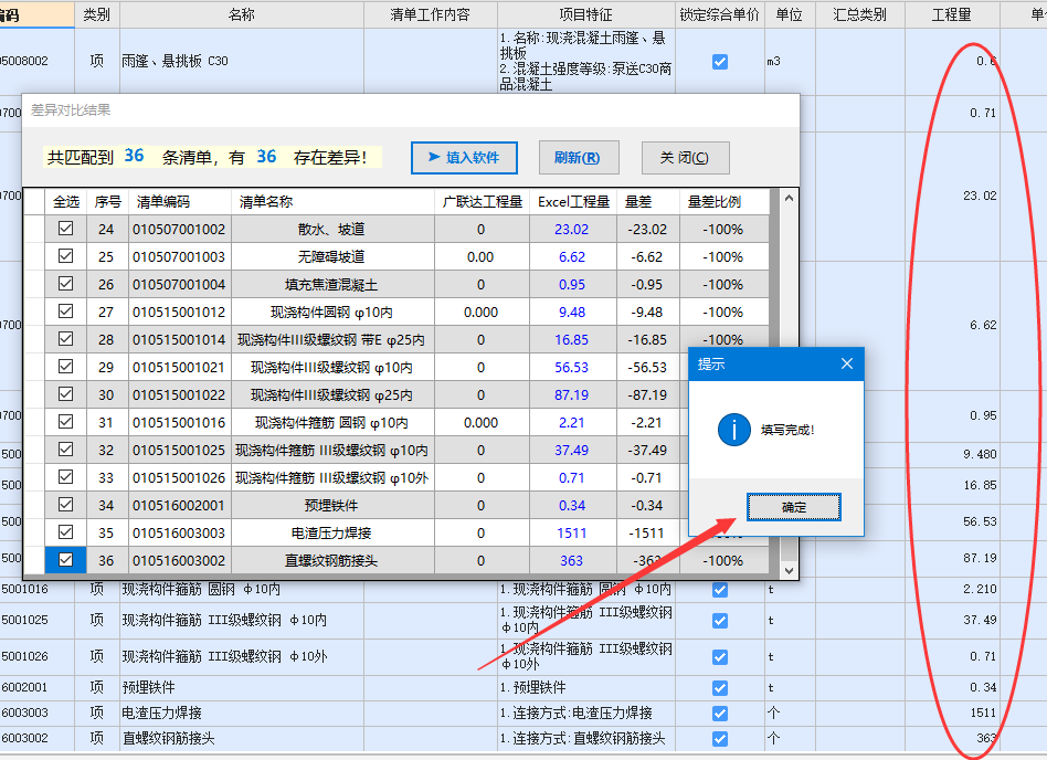 点击填入软件按,即可启动填写,4分钟可以完整填写100条清单